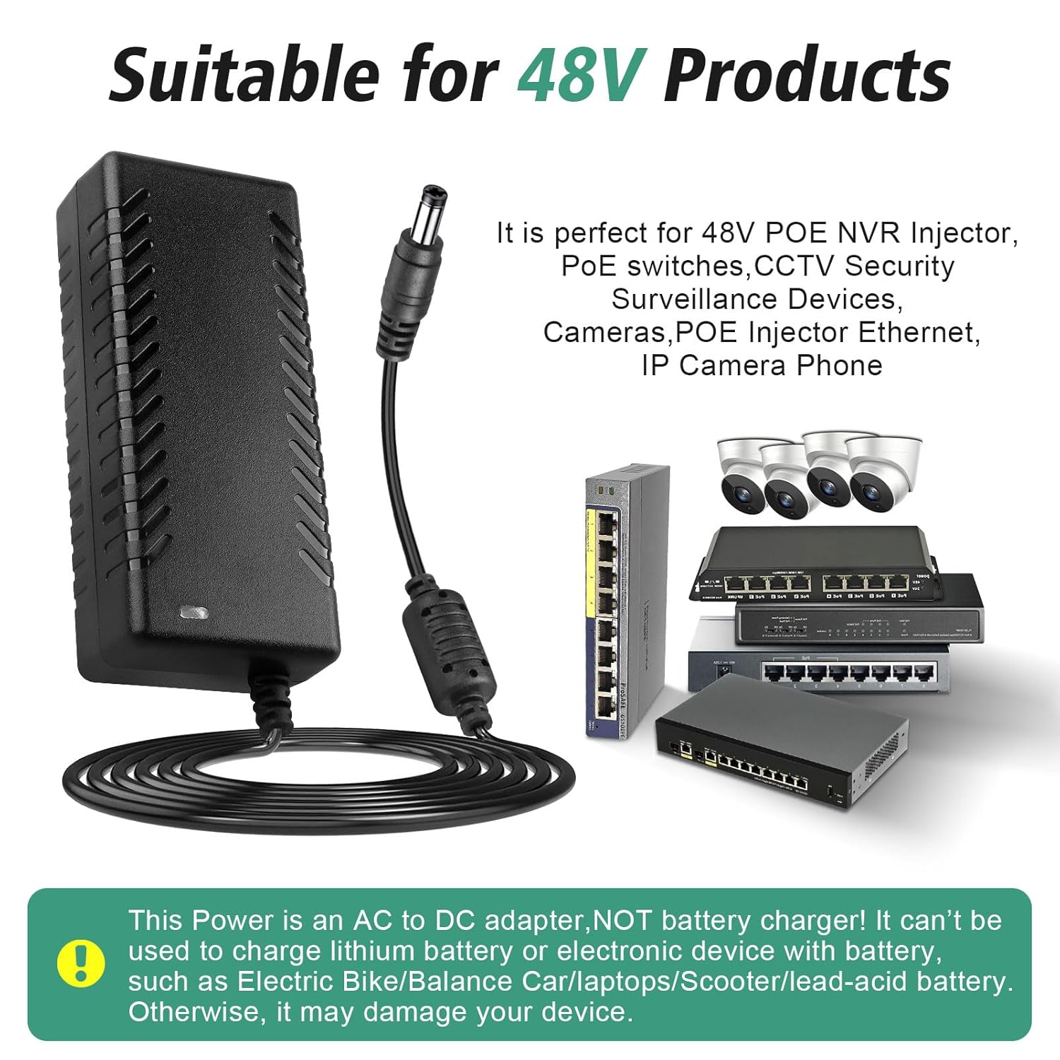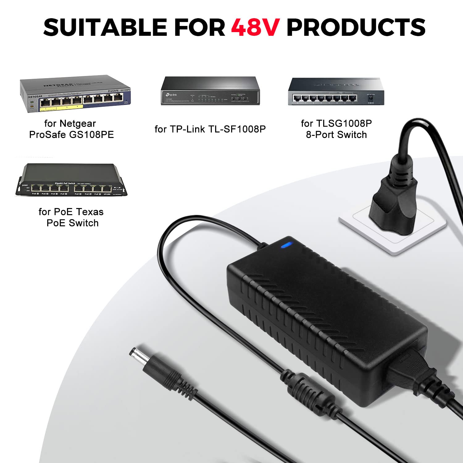 48V 2A Power Supply, LeTaoXing AC to DC 48V 2A 96W Power Adapter AC 100V – 240V Transformer 48V/2A 5.5mm x 2.5mm Output Jack for PoE Switch/PoE Injector/CCTV Camera Router Switch Control System