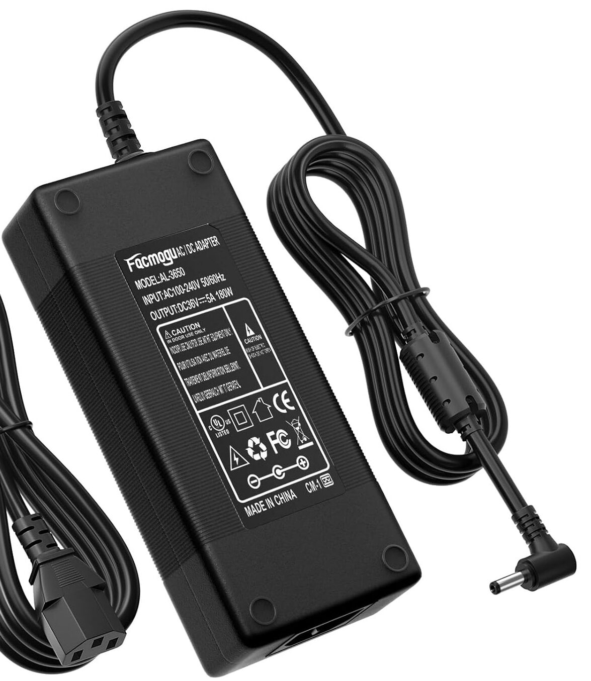 • 【Power Specifications】– Power Supply with Input AC100-240V- 50/60Hz and Output: DC 36V/5A (5000mA), 218cm (7.15 feet) Total Cable Length. Indoor use only!