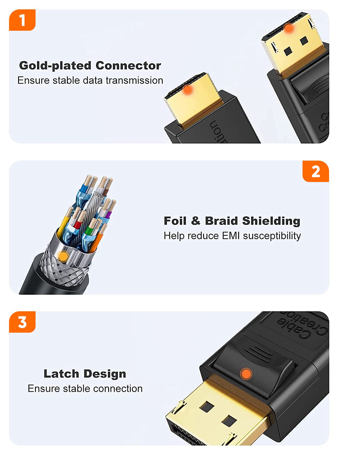 • 【Wide Compatibility】Directly connect a DisplayPort equipped desktop/laptop to an HDTV, Gaming monitor, display, gaming graphics with a DisplayPort for crystal clear audio and high definition video.