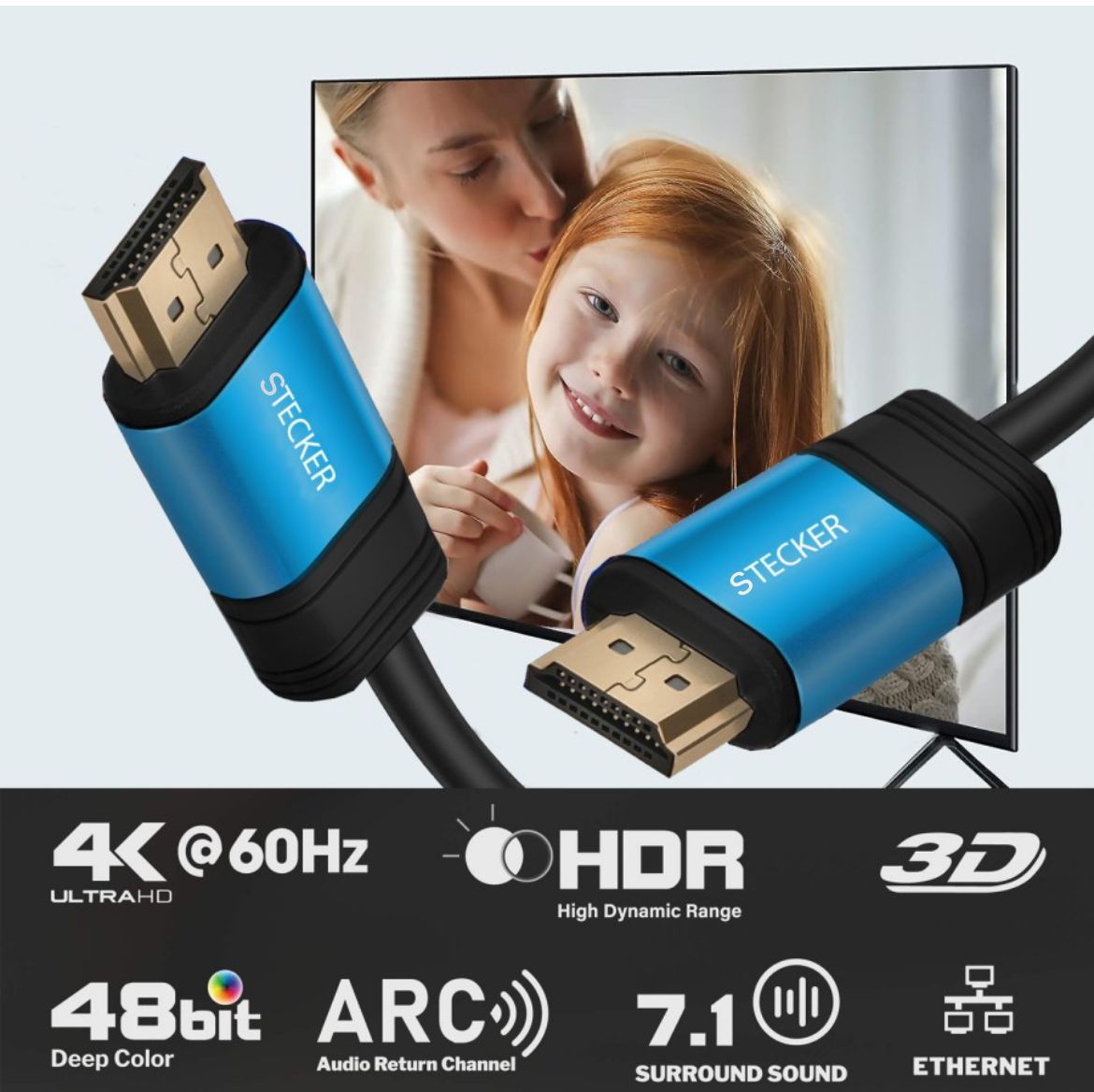 STECKER HDMI Cable 4K High-Speed HDMI Cord 18Gbps with Ethernet Support 4K 60Hz Compatible with UHD TV, Monitor, Computer, Xbox 360, PS5 PS4, Blu-ray, and… LED SONY TV SUPPORT, DJI Drone to LED 8K Support